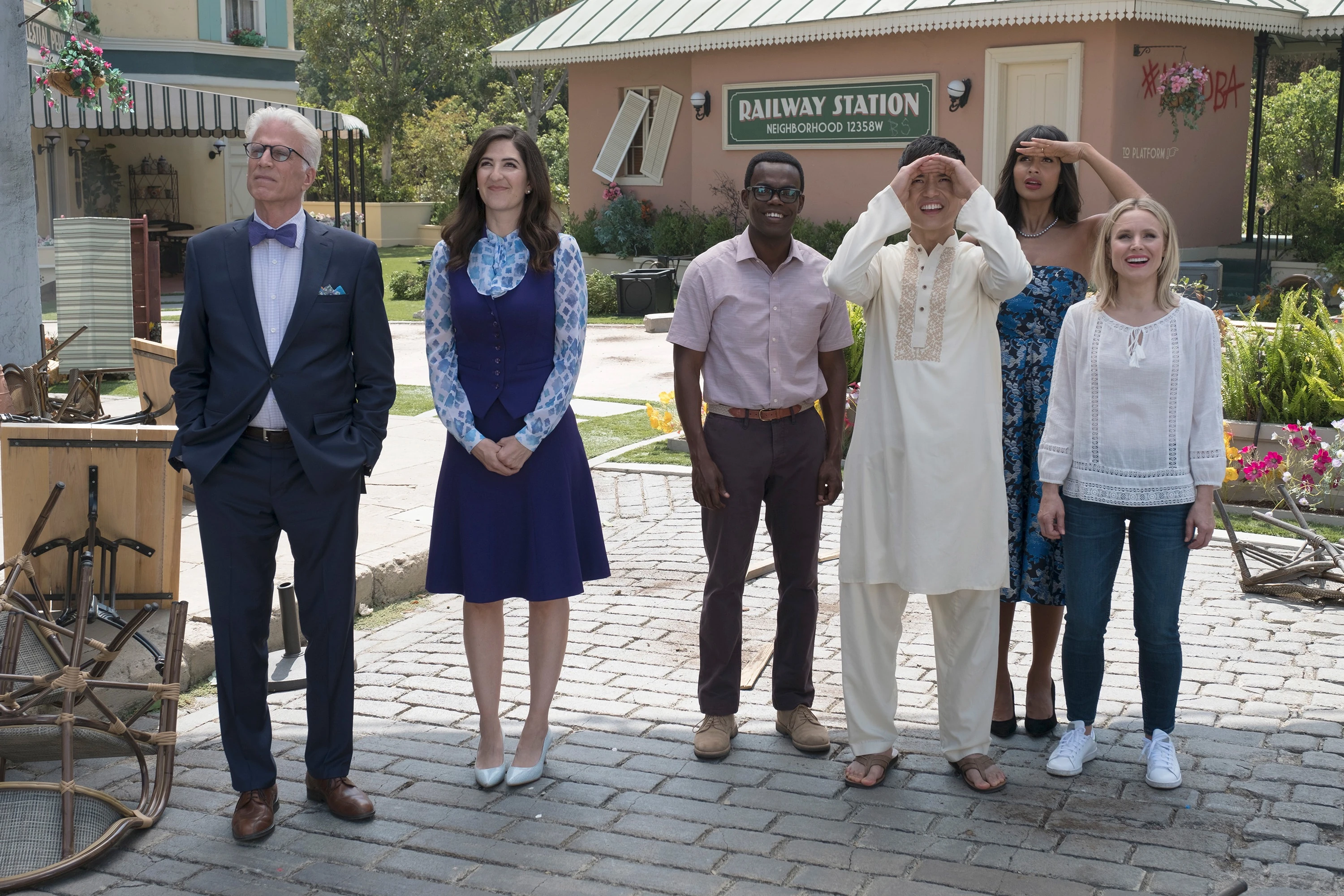 Eleanor (Kristen Bell), Chidi (William Jackson Harper), Tahani (Jameela Jamil), Janet (D'Arcy Carden) and Jason (Manny Jacinto) head to a destination that may have lasting implications.